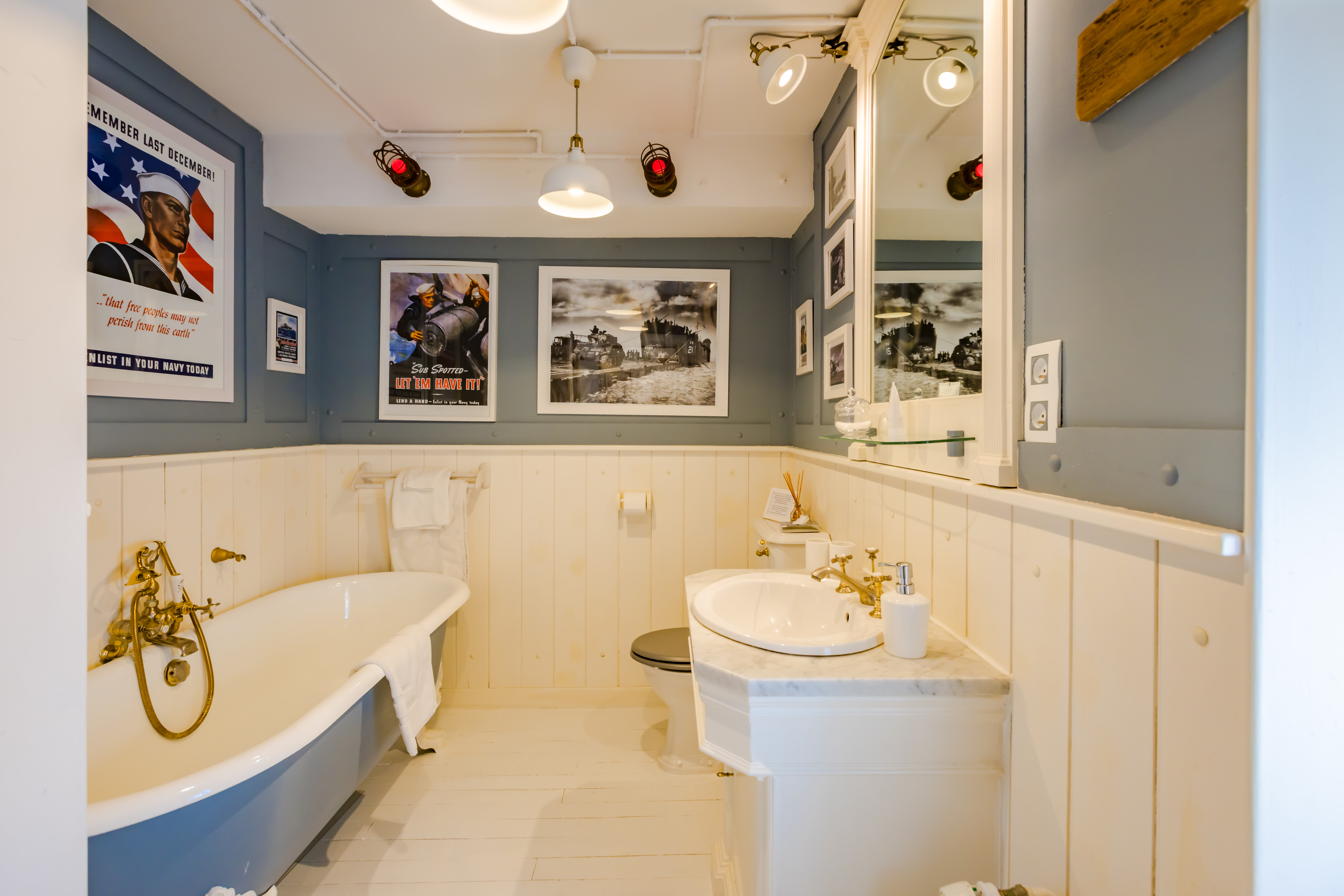 Une chambre double, disposant d’un lit de 160x200cm, et une salle de bains privative avec une baignoire ancienne en fonte et une douche séparée, de l’autre côté du couloir.