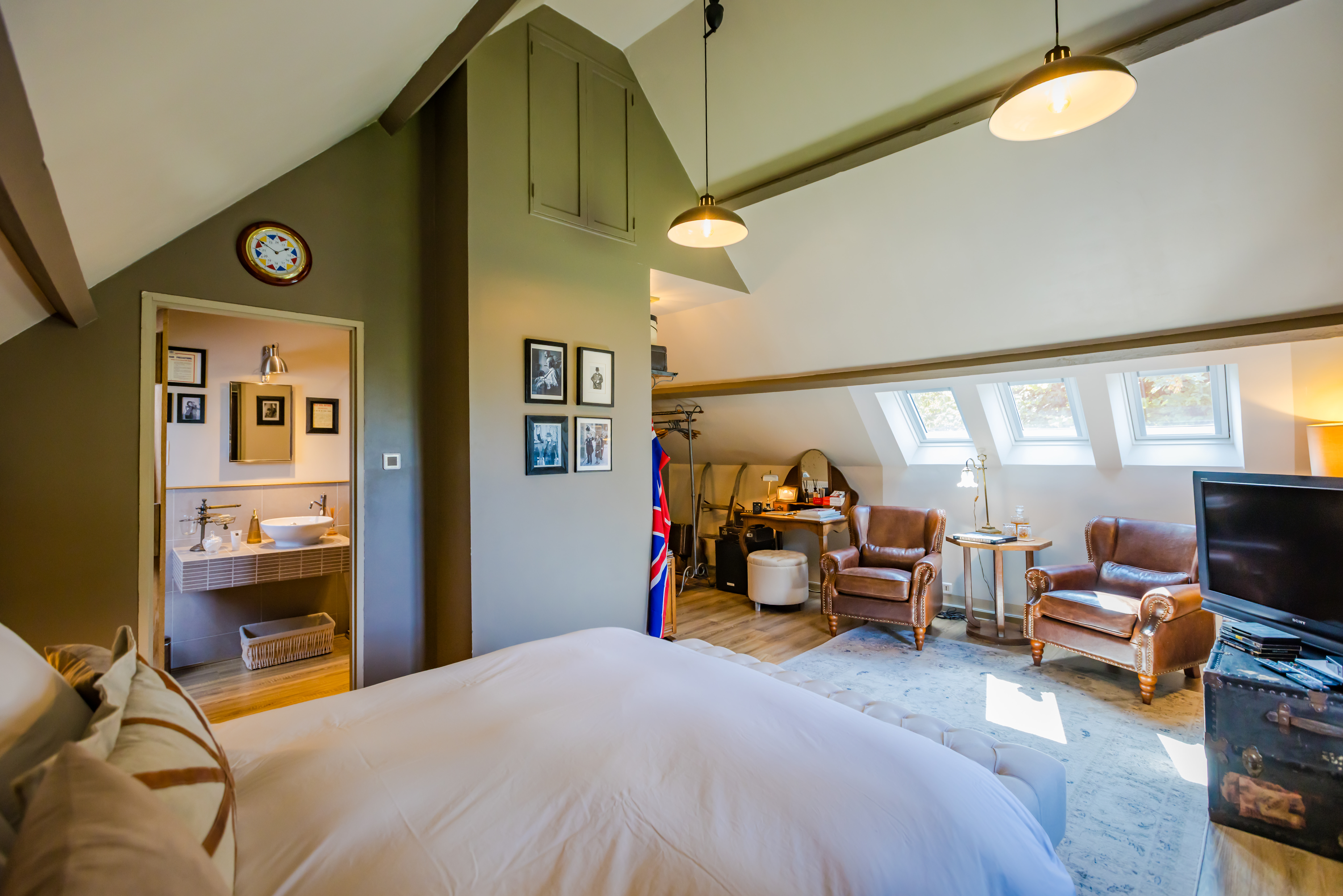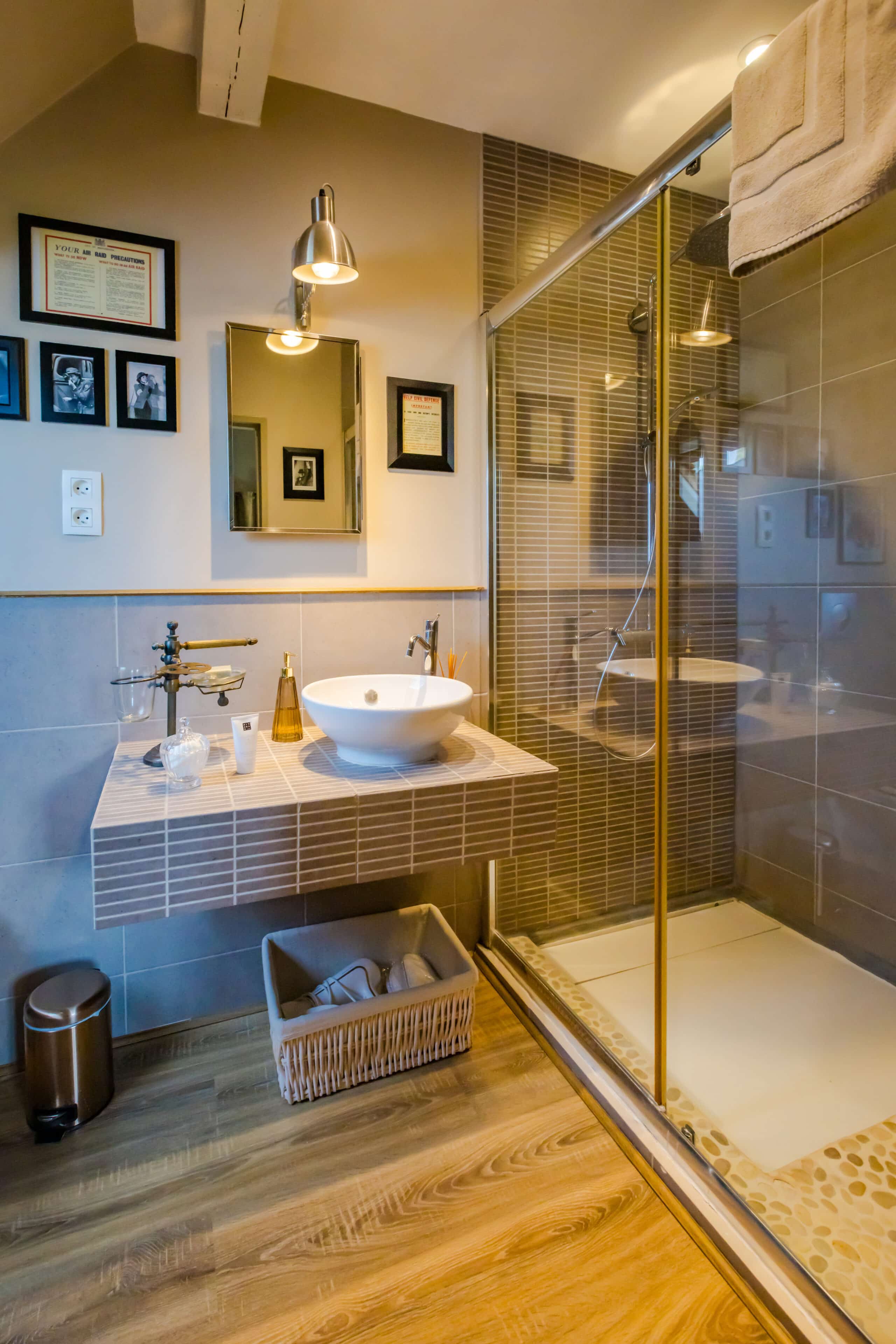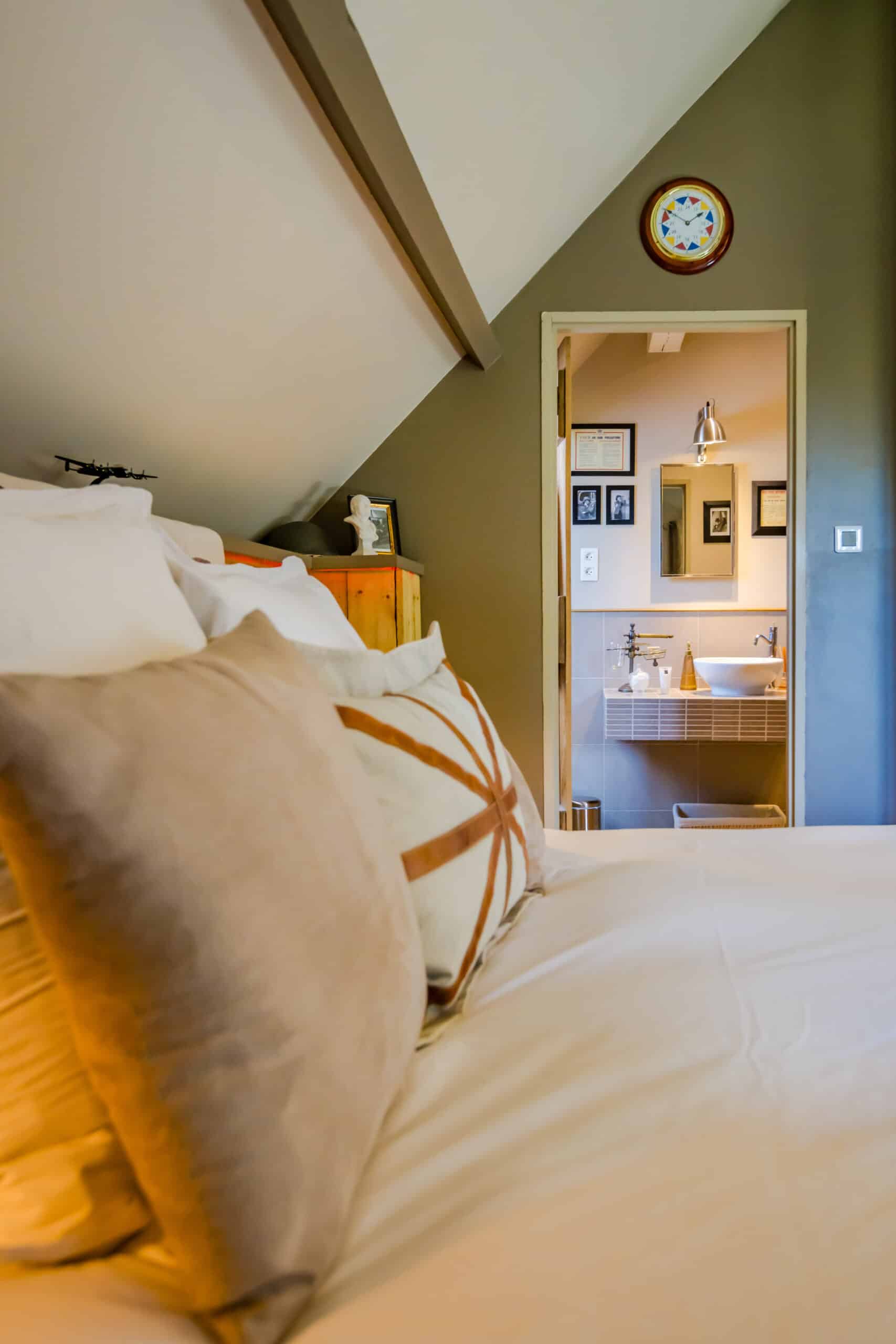 Une chambre spacieuse et lumineuse avec un lit de 160x200cm et une salle d’eau avec douche à l’italienne.